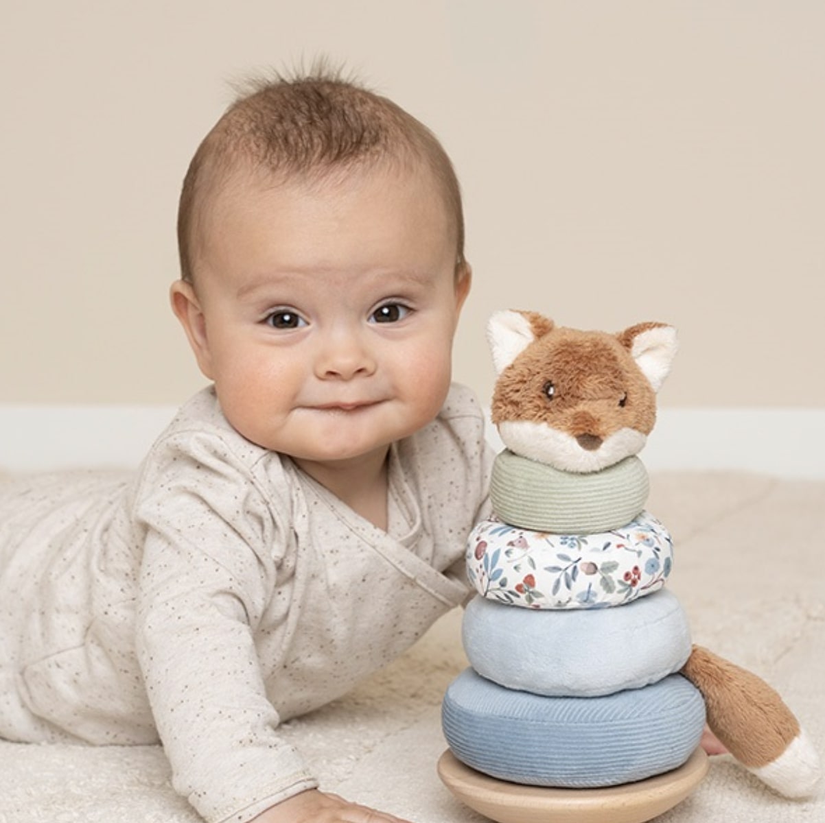Stapel de ringen en laat het vosje dansen! Deze schattige tuimelstapelaar uit de Forest Friends-collectie zorgt voor uren speelplezier. De uitdaging? Stapel de mooie houten ringen op de wiebelende basis en kijk hoe het vosje vrolijk danst! De verschillende ringen hebben unieke designs geïnspireerd op het betoverende bos en stimuleren de hand-oogcoördinatie van je kindje. Een speelse manier om motorische vaardigheden te ontwikkelen en plezier te maken. Lukt het jou om de piramide af te maken?